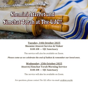 If you are joining the services by Zoom, please contact The UJC office for the Zoom link.