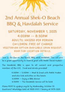 2nd Annual Shek-O Beach BBQ & Havdalah Service