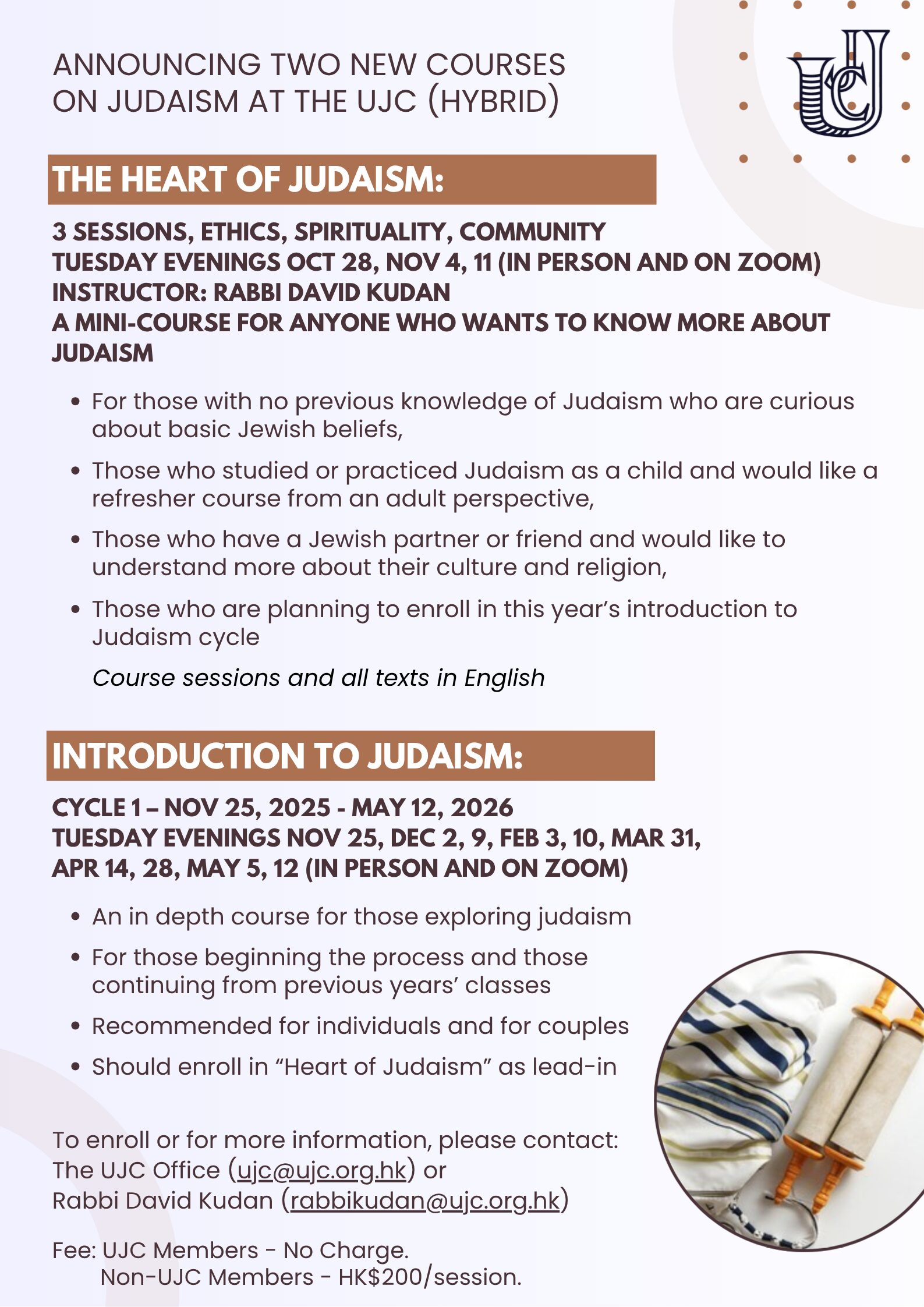 Two new courses on Judaism at The UJC