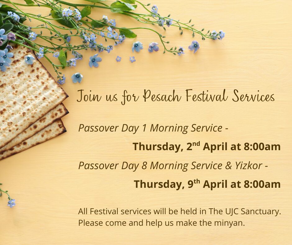 Let’s celebrate Passover together! We look forward to welcoming members of The UJC community as well as family, friends, and visitors. Click here for full details and to reserve your place at the seder. RSVP by Monday, 23rd March is essential.