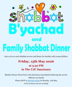 The United Jewish Congregation of Hong Kong is a welcoming, Progressive synagogue that is home to a diverse community of Jews from around the world. [more About Us]